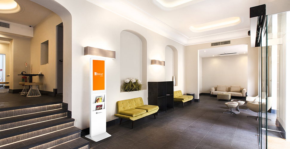 This floor standing, high resolution touchscreen display will unequivocally centralize the attention of your audience when you need it most!